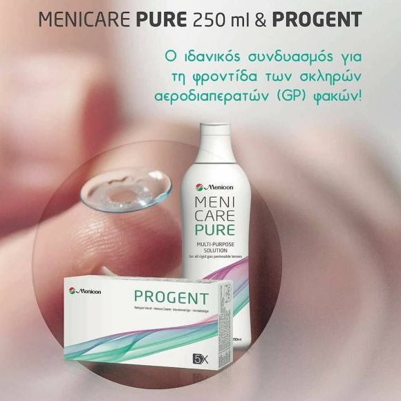 Είναι γνωστό ότι η Menicon αποτελεί την κορυφαία εταιρεία παγκοσμίως στην κατασκευή ημίσκληρων και κερατοκωνικών φακών επαφής και προτείνει το συνδυασμό Menicare Pure και Progent για την άριστη συντήρηση των ημίσκληρων κερατοειδικών και σκληρικών φακών επαφής !