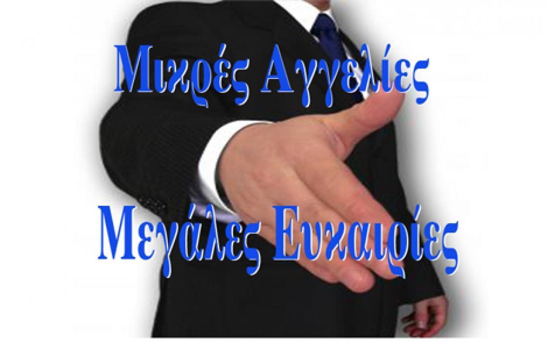 3) Πωλητής με μεγάλη εμπειρία στις πωλήσεις οπτικών ζητάει εργασία ή συνεργασία σε εταιρία που θέλει να επεκτείνει τις δραστηριότητες στην βόρεια Ελλάδα. Email: Αυτή η διεύθυνση ηλεκτρονικού ταχυδρομείου προστατεύεται από τους αυτοματισμούς αποστολέων ανεπιθύμητων μηνυμάτων. Χρειάζεται να ενεργοποιήσετε τη JavaScript για να μπορέσετε να τη δείτε.